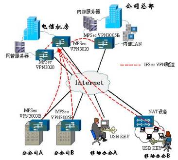 与此同时,随着国内宽带接入业务的发展,利用宽带接入网络和互联网络平台实现企业信息化已成为当前中小企业信息化过程中对网络接入方式的最佳选择。但是,在Internet上实现企业信息化面临着企业信息的安全问题,即企业信息在Internet上传输需要保证传输过程中的保密性。根据IP网上各种VPN实现技术的对比分析,IPsec VPN最适合企业利用互联网实现自己的虚拟专用网络。目前为止,基于IPSec的VPN系统在国内的宣传大多局限于企业自己在因特网上建设私有的VPN专网,而很少有运营商提出利用该技术提供VPN网络服务,而在国外这种VPN服务已经非常成熟。上海电信首开先河,成为国内第一家将可运营的VPN虚拟网作为增值服务提供给用户使用的运营商。