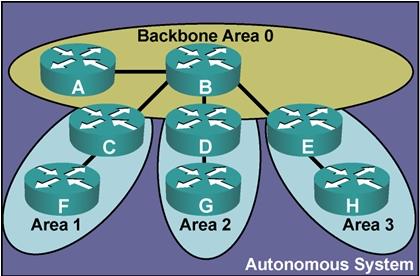 补充回答: RIP中的跳数是每一个路由器就算是一跳,但OSPF中一个区域中可以有多个路由器,其他的非骨干区域必须要与骨干区域相连,area 1和area 2之间可以通信,但他们之间的数据是通过area 0(骨干区域)来传输的,非骨干区域之间是不相连的